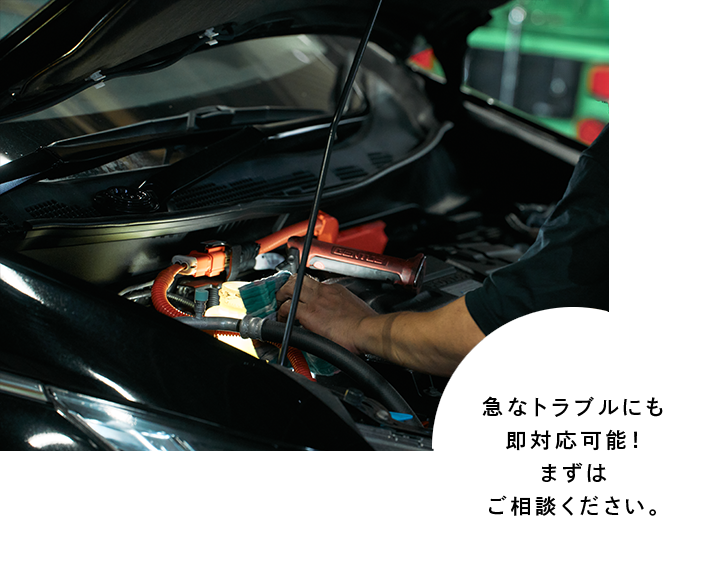 エンジン不調・エアコン故障・電気系トラブルなど、あらゆる不具合に対応。 コンピュータ診断機を完備しており、トラブルの原因を明確にした上で修理を行います。