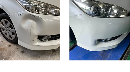 へこみ・キズの修理からバンパー交換、塗装仕上げまで幅広く対応。 保険修理にも対応しており、保険会社とのやりとりも代行いたします。 自社見積もりシステムを導入しているため、適正価格でご案内可能です。